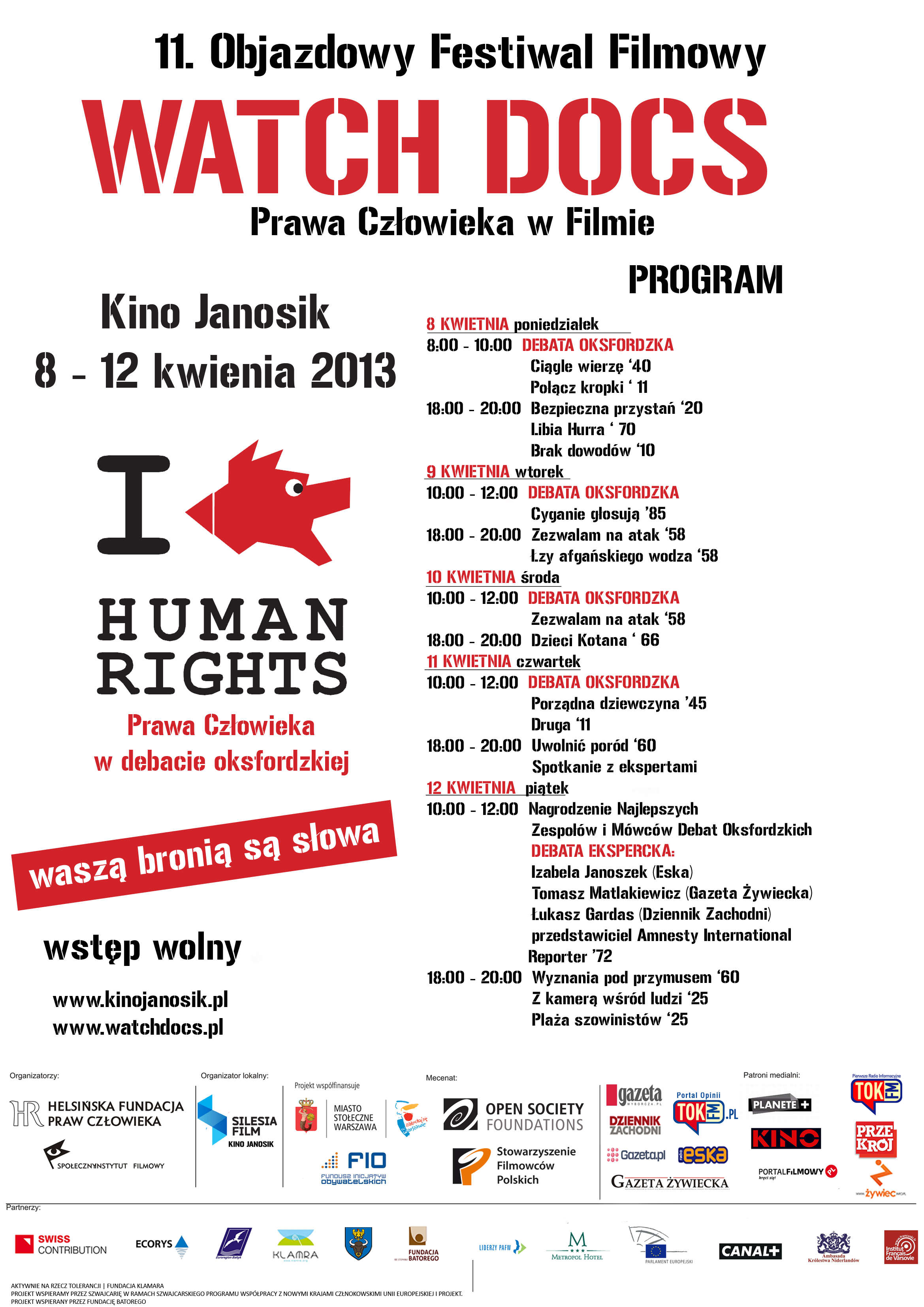 11 OBJAZDOWY FESTIWAL FILMOWY „WATCH DOCS” 08-12.04 2013, KINO JANOSIK W ŻYWCU