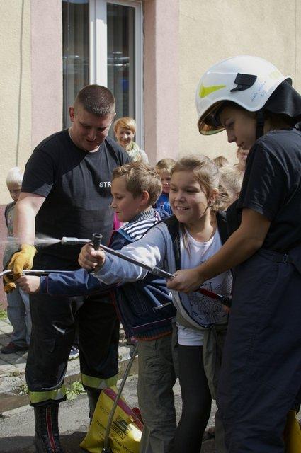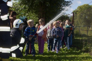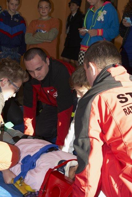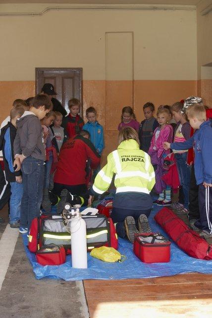 Strażacy z jednostki OSP Rajcza przybliżyli dzieciom ze szkół funkcjonowanie straży pożarnej oraz przeprowadzili pokazy ratownictwa drogowego w tym kwalifikowanej pierwszej pomocy. Zademonstrowali wyposażenie aut będących na podziale bojowym wraz z budową głównej linii. W budowie linii mogły uczestniczyć dzieci. Uczniowie otrzymali w prezencie naklejki z numerami alarmowymi oraz odblaski drogowe ufundowane przez Gminę Rajcza. Mamy nadzieję, że to nie ostatnia taka inicjatywa i kolejne pokolenia zarażą się pasją do bezinteresownego niesienia pomocy.
