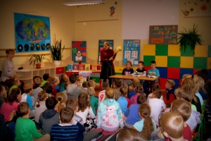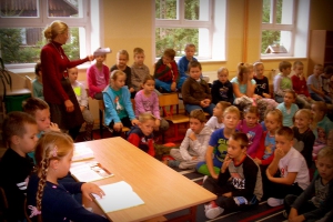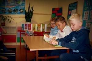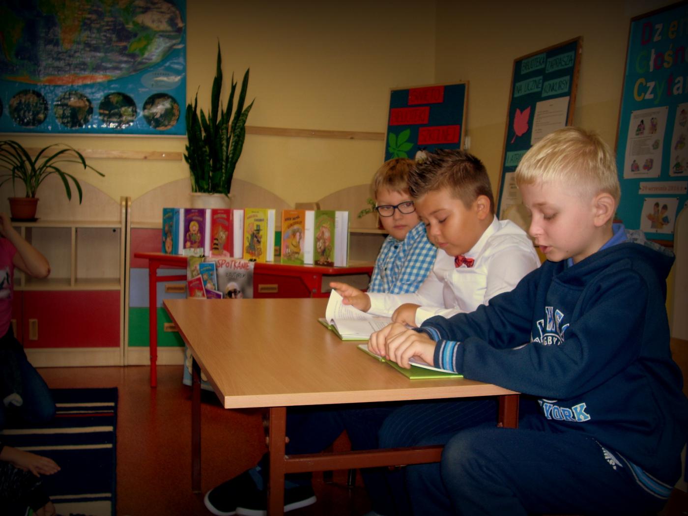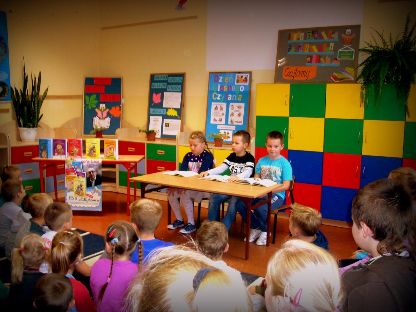 Z tej okazji 29 września uczniowie klas I-III SP wysłuchali opowiadań z książki Waldemara Cichonia pt. „Cukierku, Ty łobuzie”. Głośnego czytania o śmiesznych przygodach kota Cukierka podjęli się: Marta Worek – kl. 2 a, Dawid Wydra – kl. 2 c, Krystian Marszałek – kl. 3 a, Kacper Jonkisz – kl. 2 b, Michał Śleziński – kl. 3 b, Krzysztof Marszałek – kl. 3 c. Wielkie brawa dla nich! Spotkanie upłynęło w miłej, wesołej atmosferze. Miejmy nadzieję, że spotkania takie zaowocują w przyszłości , bo jak mówi przysłowie: „czym skorupka za młodu nasiąknie, tym na starość trąci”.