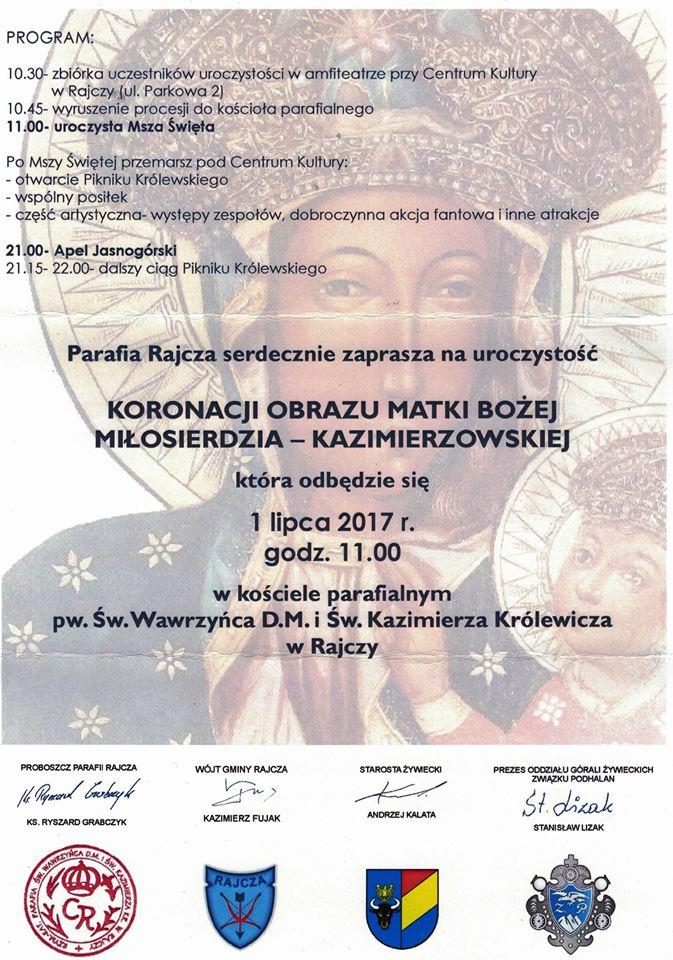 Koronacja Cudownego Obrazu Matki Bożej - Serdecznie wszystkich zapraszamy do uczestnictwa w tym wielkim i historycznym dla Naszej społeczności wydarzeniu. Uroczysta Msza Święta odbędzie się o godz. 11.00.