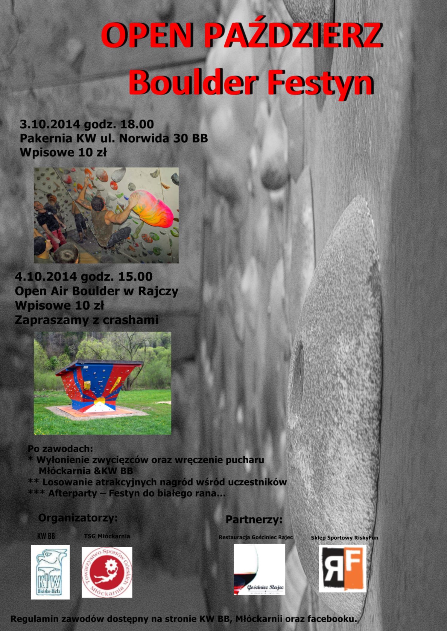 - Część II: Sobota, 4.10.2014, godz. 15.00 – Open Air Boulder, naprzeciwko restauracji Gościniec Rajec, Rajcza 298B, 34-370 Rajcza