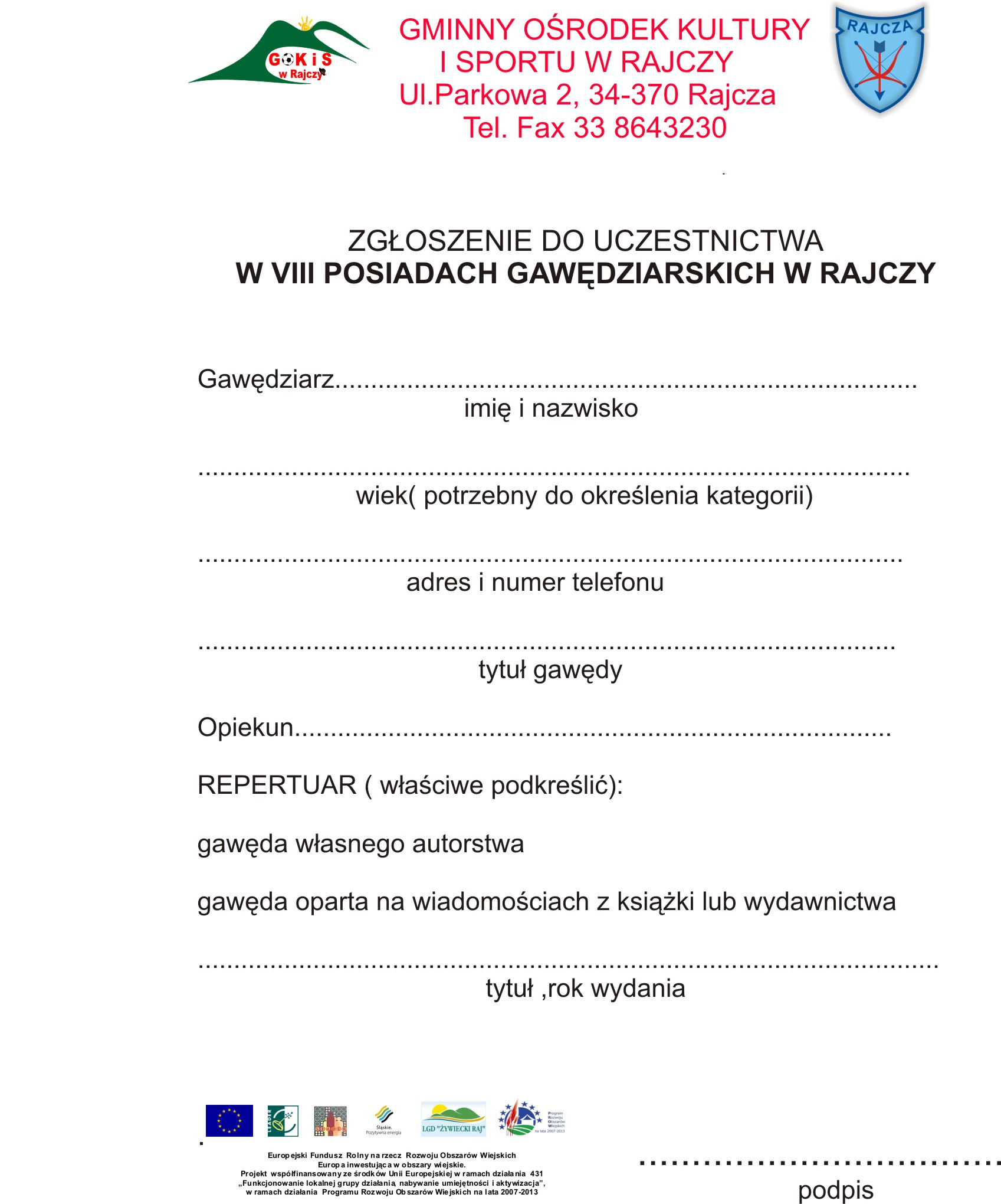 Gminny Ośrodek Kultury i Sportu w Rajczy serdecznie zaprasza do udziału w Posiadach Gawędziarskich, które odbędą się 10 maja br. W załączeniu regulamin i karta zgłoszenia.