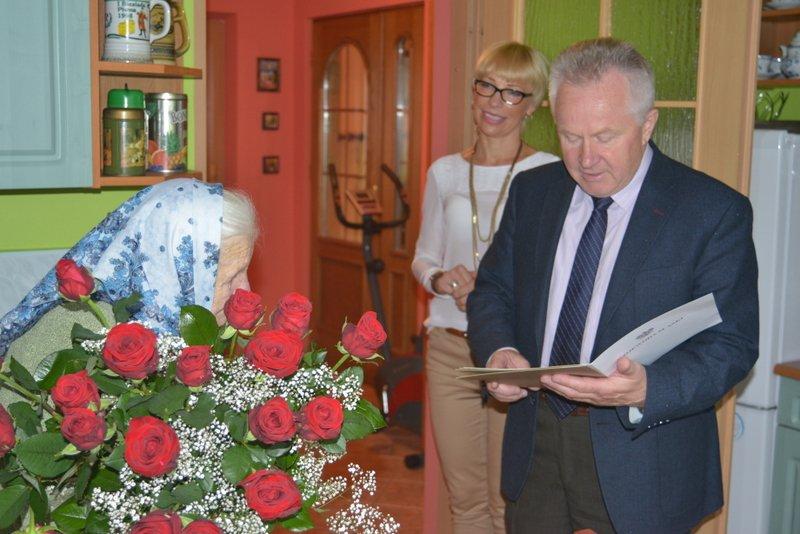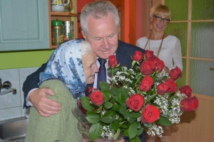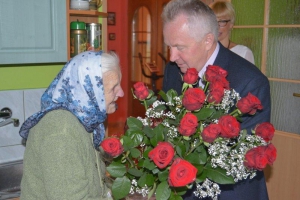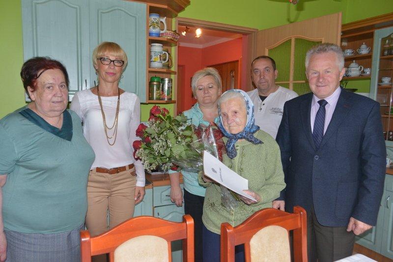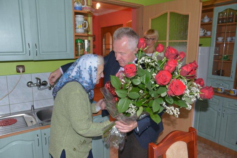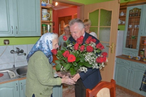 Z tej okazji Kazimierz Fujak - wójt Gminy Rajcza życzył wspaniałej Jubilatce wielu kolejnych lat w zdrowiu, szczęściu i zadowoleniu. Wręczył także okazały bukiet kwiatów oraz listy gratulacyjne od Piotra Litwy - wojewody śląskiego oraz od lokalnego samorządu. W uroczystości wzięła także udział najbliższa rodzina oraz pracownica USC w Rajczy.