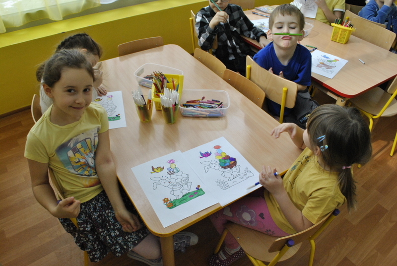 Piękne pisanki dziewczynki namalowały! Ale Patrykowi się chyba nie podobają.