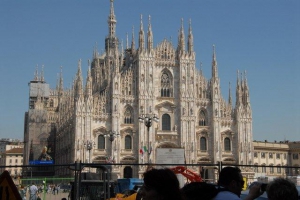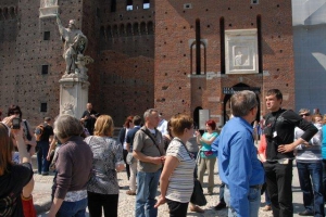 Podczas pierwszego punktu wycieczki, uczestnicy mieli okazję zwiedzić najważniejsze i najbardziej znane zabytki Mediolanu, takie jak: Katedrę Narodzin św. Marii, Galerię Wiktora Emmanuela, Łuk Tryumfalny, a także dziedziniec Zamka Sforzów.