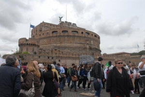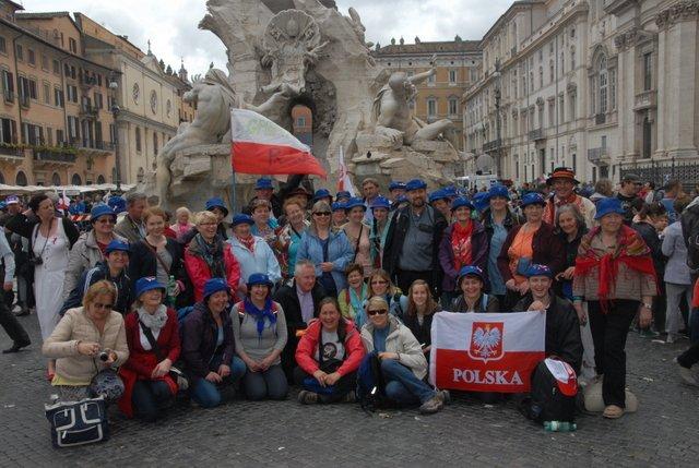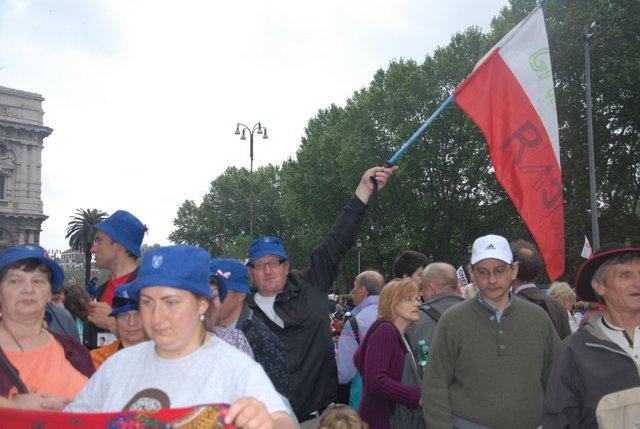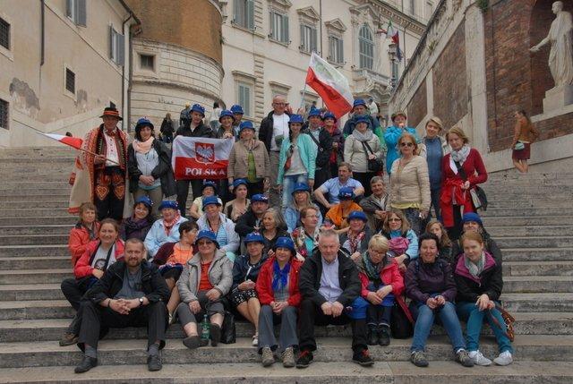 Dnia 27 kwietnia, uczestnicy wycieczki przybyli do Rzymu, na uroczystości związane z Kanonizacją naszego rodaka – ukochanego Jana Pawła II. Podczas wędrówki po „wiecznym mieście” reprezentacja naszej gminy została zauważona przez telewizje TVP info. Po kilku słowach wypowiedzianych przez Panią Sekretarz – Agnieszkę Szczotkę, grupa odśpiewała przed kamerami Barkę. Podczas tego dnia grupa rajczańska miała okazję zobaczyć Zamek Świętego Anioła, Most Świętego Anioła, siedzibę Sądu Najwyższego, Plac Navona, Panteon w Rzymie, fontannę Di Trevi oraz Plac Św. Piotra.
