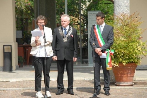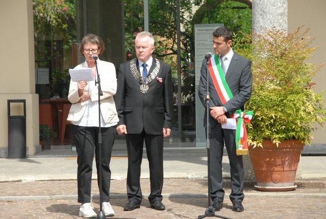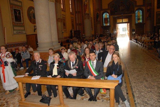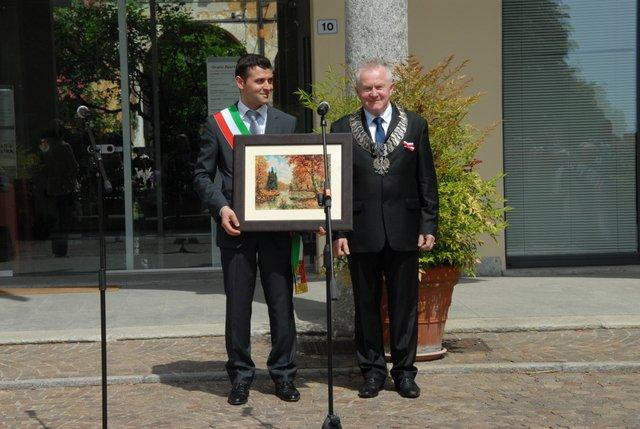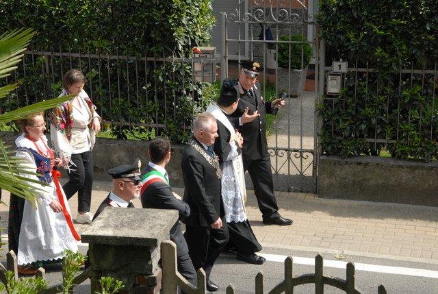 Podczas wizyty w Lambrugo przedstawiciele gminy Rajcza uczestniczyli w uroczystościach Święta Państwowego Włoch, przypadającego na dzień 25 kwietnia. Data ta upamiętnia wyzwolenie Włoch od nazizmu. Oficjalne uroczystości rozpoczęły się Maszą Świętą, która ze względu na naszą obecność była dwujęzyczna. I czytanie przypadło w udziale wójtowi gminy Rajcza. Kazanie wygłosił ks. Mariusz Zemanek, natomiast modlitwę wiernych odczytała radna – Anna Rybarska. W duchu wzajemnej integracji polsko-włoskiej na Mszy Św. wspólnie odśpiewana została pieść Czarna Madonna oraz ulubiona pieśń Jana Pawła II – Barka. Po Mszy świętej, wszyscy obecni na czele z burmistrzem gminy Lambrugo Giuseppe Costazno – wyruszyli w pochodzie uliczkami Lambrugo, podczas którego władze partnerskie złożyły wieńce pod pomnikami upamiętniającymi ważne wydarzenia historyczne. Na trasie przygrywała orkiestra dęta, a na zakończenie przemarszu przed budynkiem gminy Lambrugo wójt Kazimierz Fujak oraz burmistrz Giuseppe Costazno wygłosili przemówienia oraz przekazali sobie pamiątki, symbolizujące zacieśnienie współpracy partnerskiej. Oficjalne uroczystości zakończyły się okolicznościowym obiadem. Wszystkie punkty uroczystości uświetniał nasz poczet sztandarowy oraz panie w tradycyjnych strojach regionalnych.