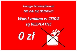 Komunikat Ministerstwa Rozwoju. Ministerstwo Rozwoju uprzejmie przypomina, że rejestracja w CEIDG jest całkowicie bezpłatna.