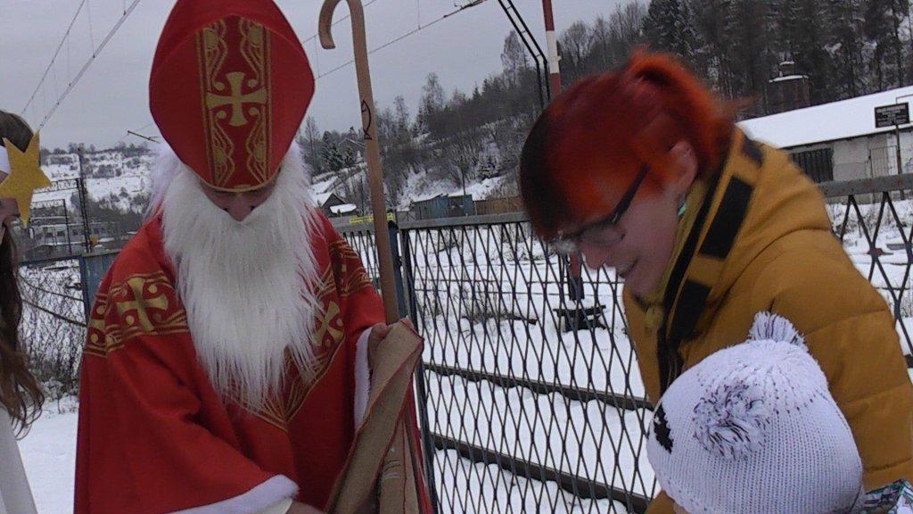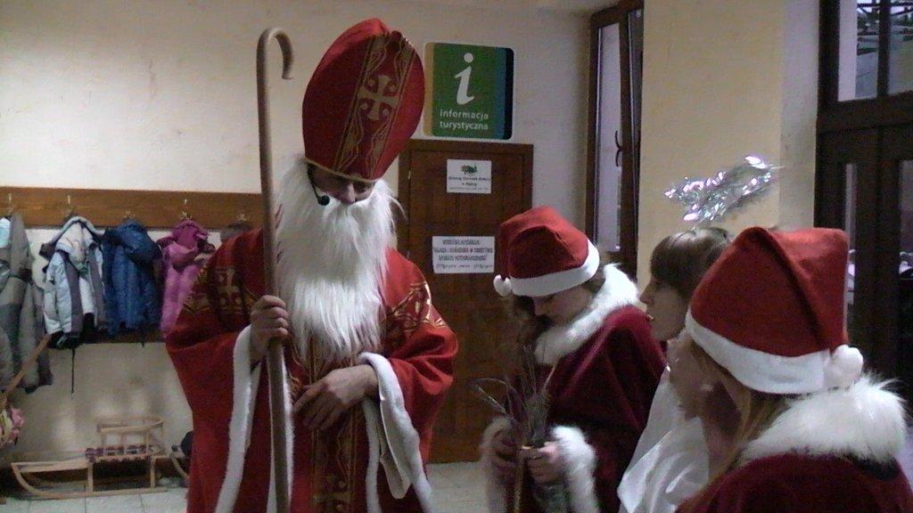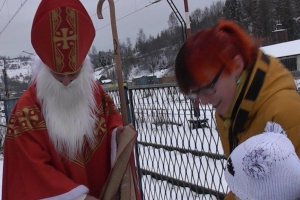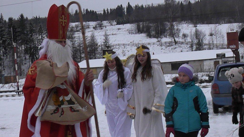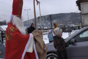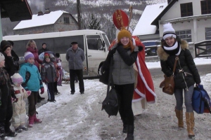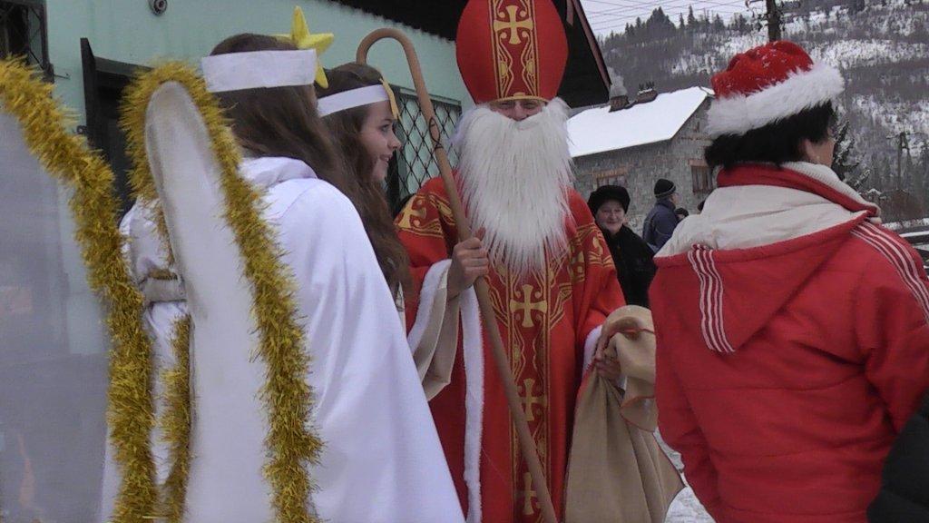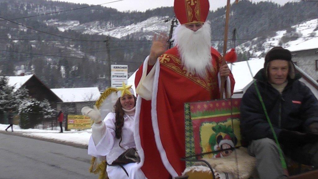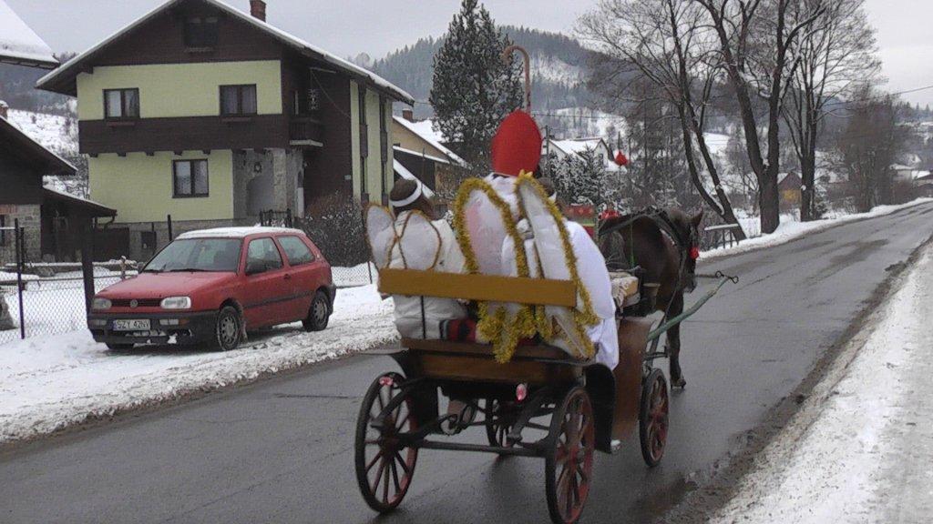W towarzystwie aniołków rozdawał napotkanym dzieciom słodycze. Sporadycznie trafiała się też rózga, którą wręczał dorosłym. Na zakończenie pracowitego dnia Mikołaj dotarł do Centrum Kultury w Rajczy, gdzie odbyło się przedstawienie przygotowane przez Grupę Teatralną Effatha. Spektakl obejrzało wielu młodych widzów oraz ich rodzice. Na zakończenie gość z Laponii ponownie rozdawał prezenty.