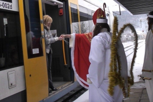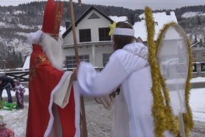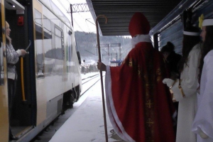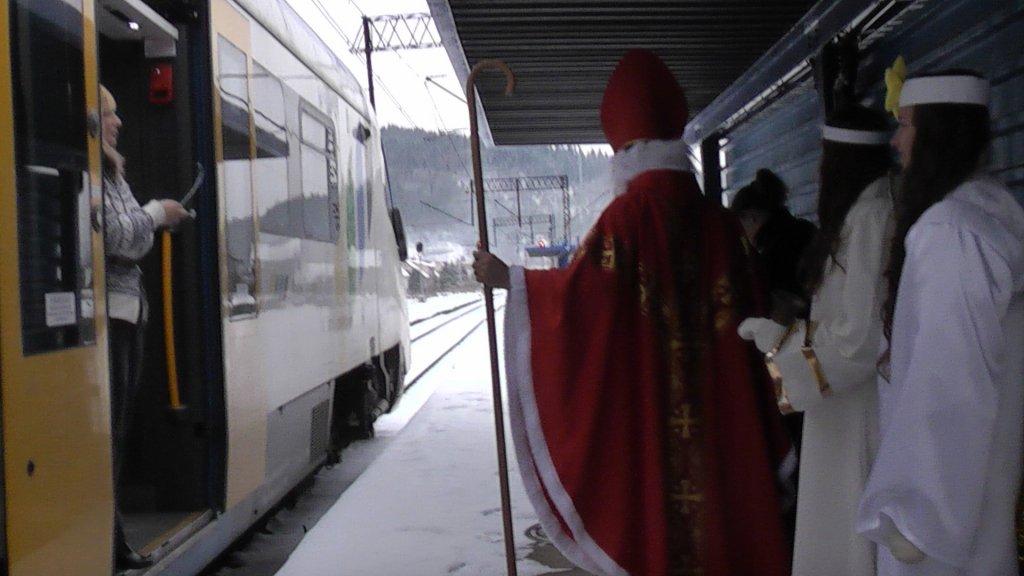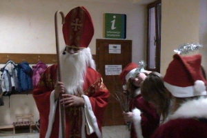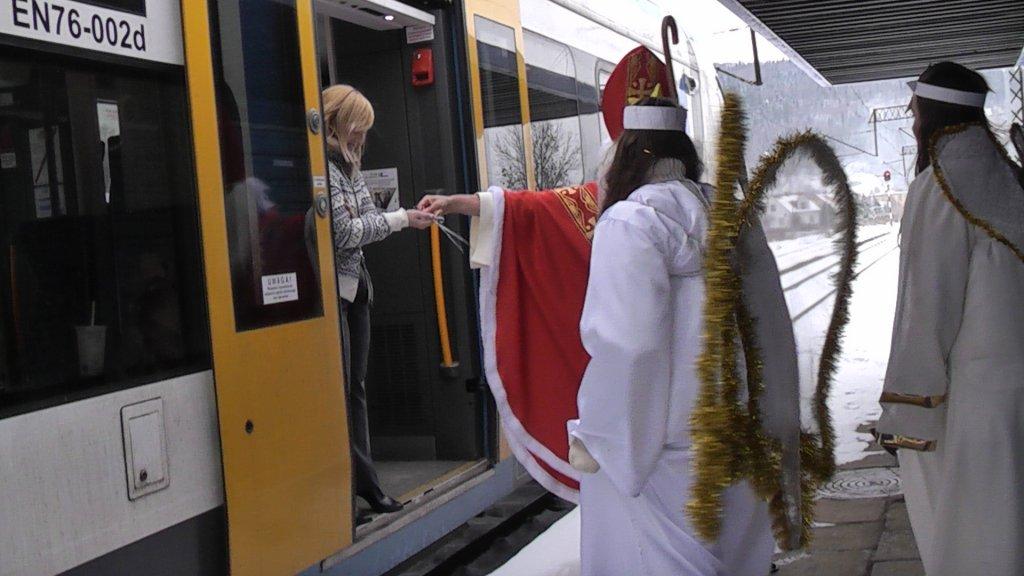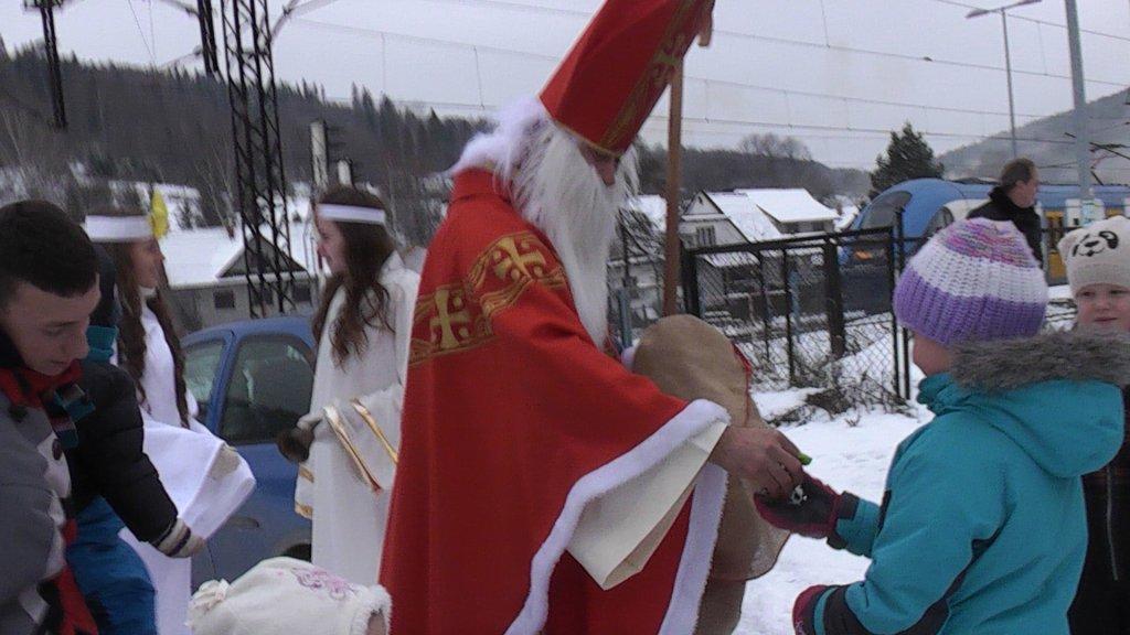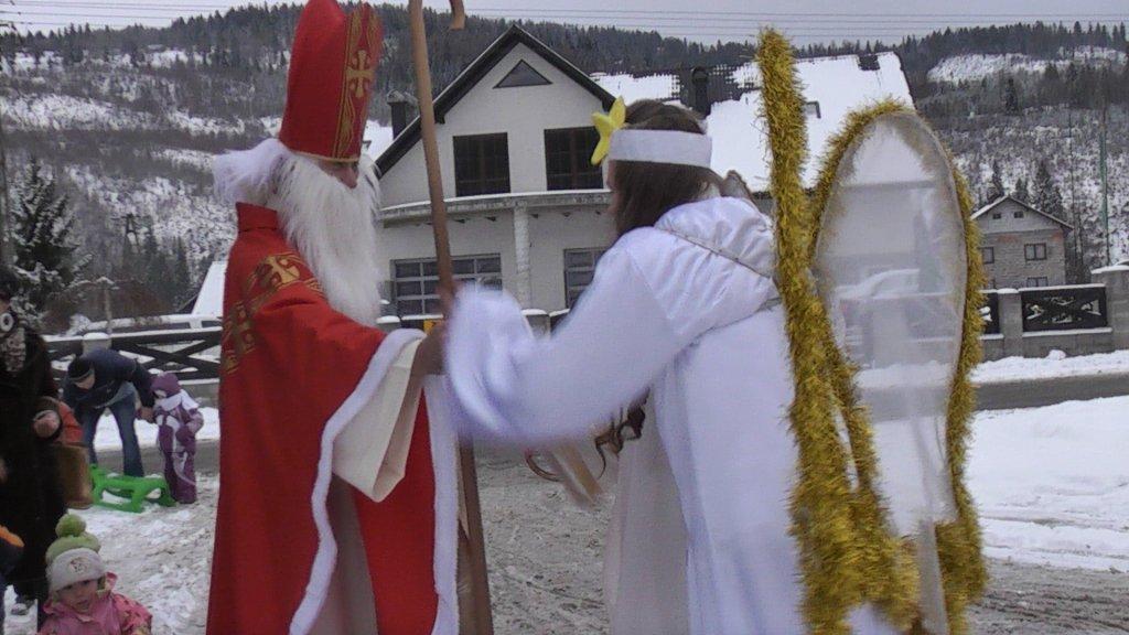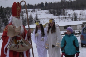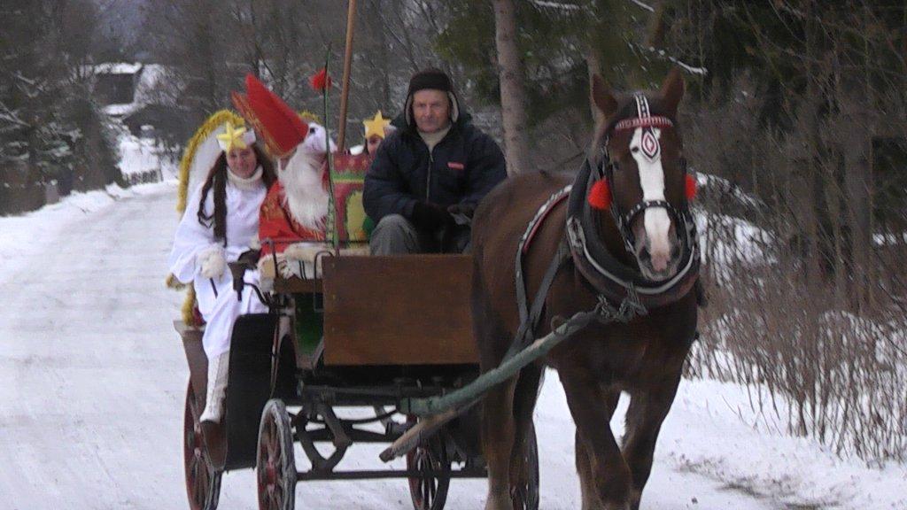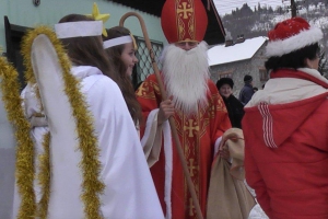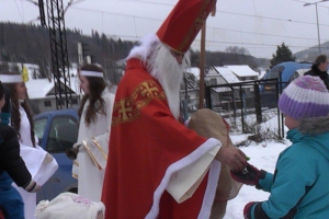 W towarzystwie aniołków rozdawał napotkanym dzieciom słodycze. Sporadycznie trafiała się też rózga, którą wręczał dorosłym. Na zakończenie pracowitego dnia Mikołaj dotarł do Centrum Kultury w Rajczy, gdzie odbyło się przedstawienie przygotowane przez Grupę Teatralną Effatha. Spektakl obejrzało wielu młodych widzów oraz ich rodzice. Na zakończenie gość z Laponii ponownie rozdawał prezenty.