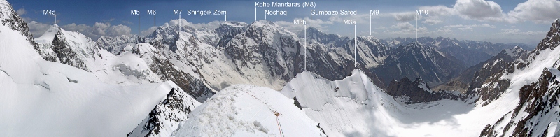 Fakt, że Hindukusz początkowo nas zaskoczył. Do wysokości 5700m dotarliśmy zdruzgotani, nawet nie było okazji, żeby wyciągnąć linę. Jedyne zastosowanie, jakie wynalazłem dla czekana, to uchwyt na rolkę papieru toaletowego. Naszą psychikę podreperowała dopiero wspinaczka stromą granią w niezwiązanym śniegu do obozu trzeciego i rozpościerający się stamtąd widok – przełęcz o nazwie Pālane Safēd zwieńczona była z jednej strony kilkuset metrami ściany Kohe Nadir Šah, z drugiej zaś krótką, poszarpaną granią nienazwanego szczytu o symbolu M3.