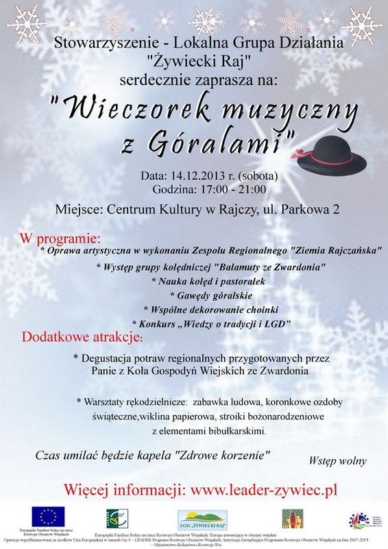 Impreza odbędzie się w Centrum Kultury w Rajczy (ul. Parkowa 2), w dniu 14.12.2013 r. w godz. 17:00-21:00.
