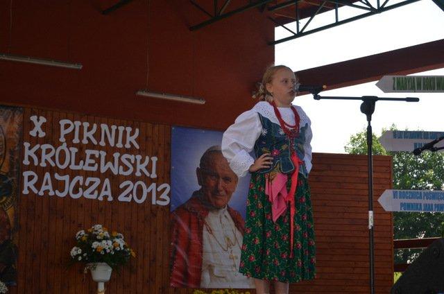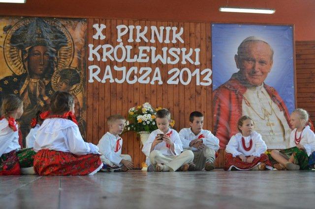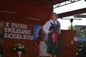 Piknik Królewski jest jedyną w swoim rodzaju imprezą i już od 10 lat gromadzi sporą grupę ludzi, którzy wraz stojącym na czele Proboszczem Ks. Kanonikiem Franciszkiem Warzechą pracują przy jej organizacji społecznie. W tym roku obchodziliśmy 344 lat darowania obrazu Matki Bożej Kazimierzowskiej przez króla Jana Kazimierza do Kościoła w Rajczy, 16 lat ustanowienia Sanktuarium w Rajczy, VI rocznicę poświęcenia pomnika Jana Pawła II oraz VI rocznicę otwarcia Szlaków Papieskich w Worku Raczańskim. Z tej okazji odbyła się uroczysta Msza Święta w Kościele Parafialnym w Rajczy.